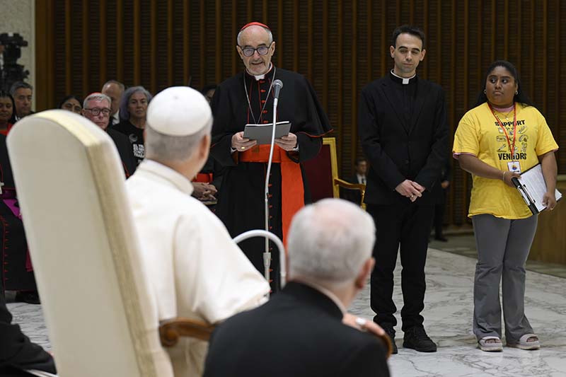 The gathering in the Paul VI Audience Hall was part of the Jubilee of Popular Movements and the Fifth World Meeting of Popular Movements taking place in Rome Oct. 21-24. The popular movements include those that organize informal workers who collect and recycle trash, gather people who live in the informal settlements on the outskirts of cities, rally citizens to promote care of the environment, assist subsistence farmers and rescue migrants at sea.
