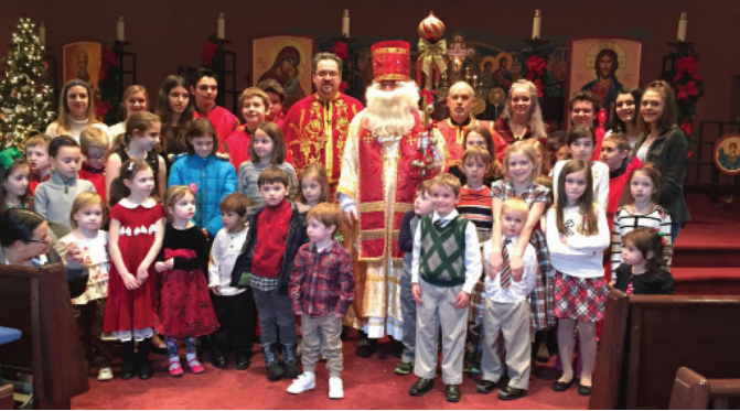 As we sang “O who loves Nicholas the Saintly,” we welcomed St. Nicholas to our parish family Dec. 17. Following the welcome, our parish festivity continued in the Church hall where all the children had the opportunity to visit St. Nick. All of our children received a present and some chocolate golden coins.